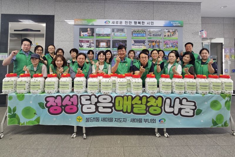 천안시 불당1동(동장 배명길)은 19일 새마을부녀회(회장 정현정)‧새마을협의회(회장 이종진)가 ‘정성 담은 매실청 나눔’ 행사를 진행했다고 밝혔다.