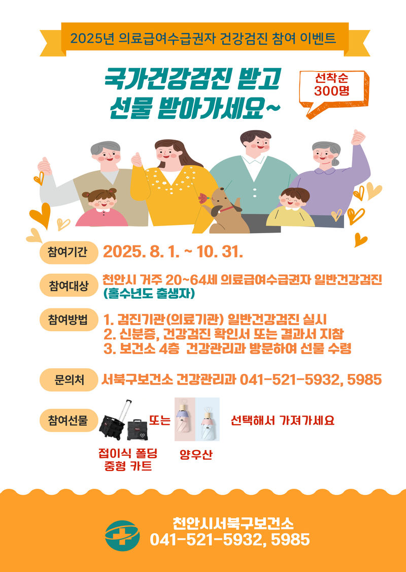 [천안시 의료급여수급권자 건강검진 참여 이벤트 홍보문.]