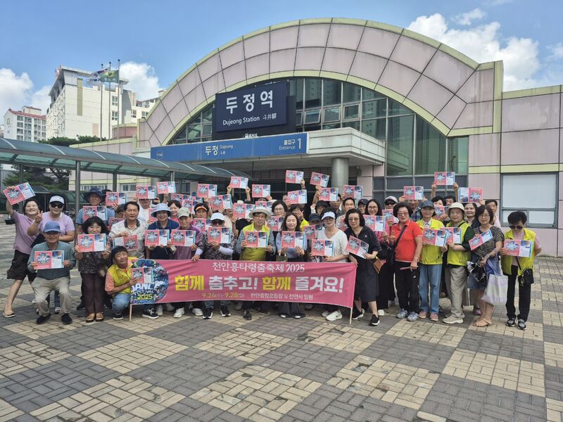 천안시 부성1동(동장 정선하)은 21일 통장협의회(회장 이동섭)가 ‘천안흥타령춤축제2025 함께 춤추고! 함께 즐겨요!’ 홍보 캠페인을 펼쳤다고 밝혔다.