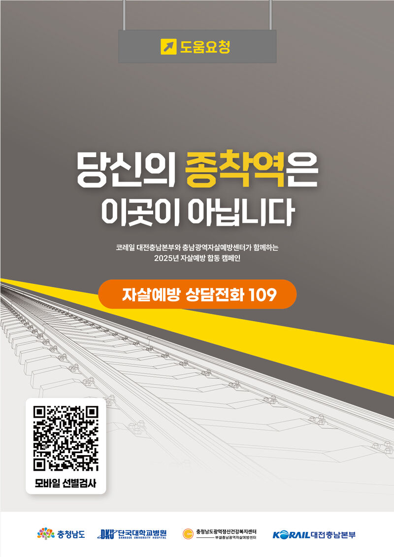 충남광역자살예방센터, 코레일 대전충남본부와 진행하는 이번 캠페인은 ‘당신의 종착역은 이곳이 아닙니다’라는 메시지를 통해 생명 존중, 자살 예방, 철도 안전에 대한 가치를 널리 알릴 계획이다.