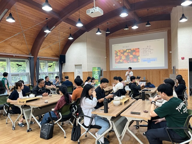 참가자들은 가을이 깊어지는 숲속에서 산림치유지도사와 함께 숲길 걷기, 자연물을 활용한 조별 활동, 싱잉볼 명상, 꽃차 테라피 등 다채로운 쉼 프로그램을 체험하며 긴장을 풀고 안정을 되찾았다.