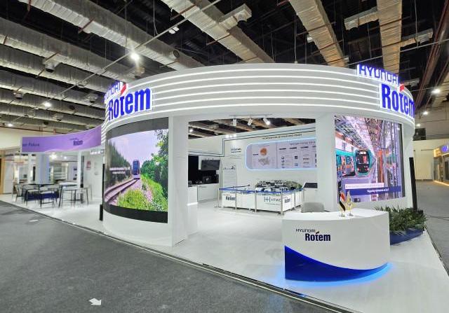 11월 9일부터 11일까지 이집트 뉴카이로 소재 국제전시센터(EIEC)에서 열리는 현지 최대 교통물류 전시회 `TransMEA 2025`에 참가하는 현대로템 전시관 전경