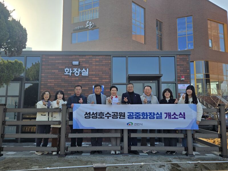 천안시, 성성호수공원 신규 공중화장실 개방… “24시간 이용 가능” - 상가단지 인근 설치해 16일부터 운영… 안심벨·안심거울 등 안전시설 구축