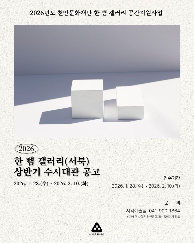 (재)천안문화재단은 오는 28일부터 상반기 한 뼘 갤러리 수시대관 공모 접수를 받는다고 27일 밝혔다.
