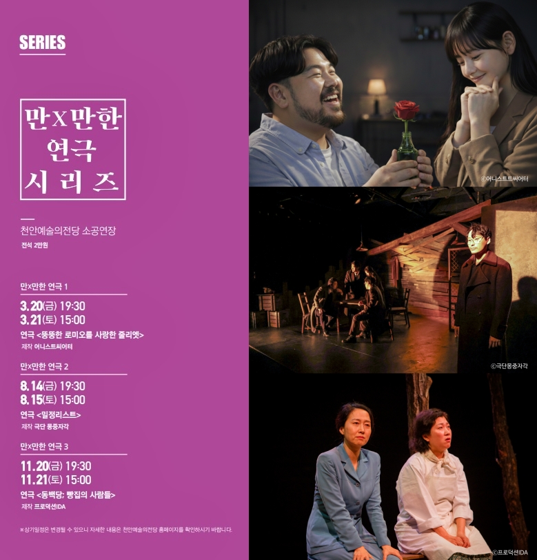천안문화재단이 오는 10일부터 천안예술의전당 기획공연 ‘만X만한 연극 시리즈’의 티켓 예매를 시작한다.