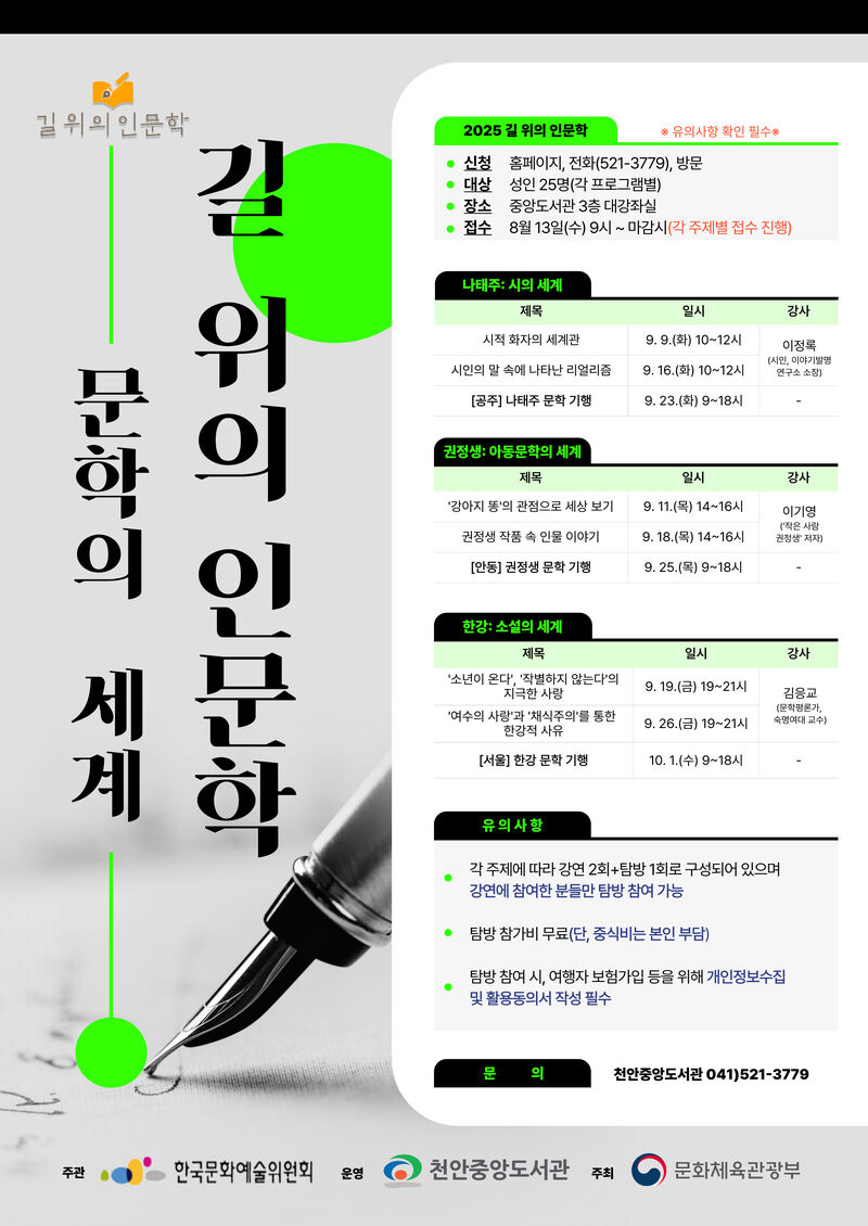 [천안시 중앙도서관 인문학 프로그램 홍보문]
