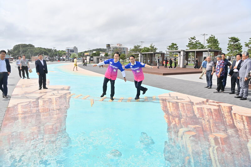 김 지사가 이어 찾은 남당항은 새조개, 대하 등 서해의 맛을 선사하던 곳에서, 2023년 해양분수공원과 네트어드벤처를 추가하며 멋과 즐거움을 더한 공간으로 탈바꿈했다.