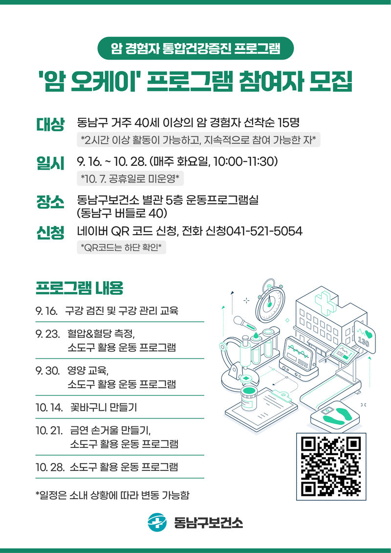 천안시 동남구보건소, 오는 9월 ‘암 오케이’ 프로그램 운영 - 암 경험자의 일상 속 건강관리 지원