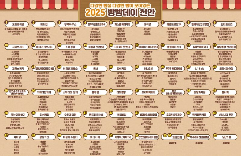 2025 빵빵데이 천안’ 18~19일…51개 동네빵집 리스트 공개! - - 가격표시제 시행, 베이킹 체험존·이벤트 확대 - - 노브레인, 김필, 퀸즈아이 축하공연과 드론라이트쇼 개최 예정