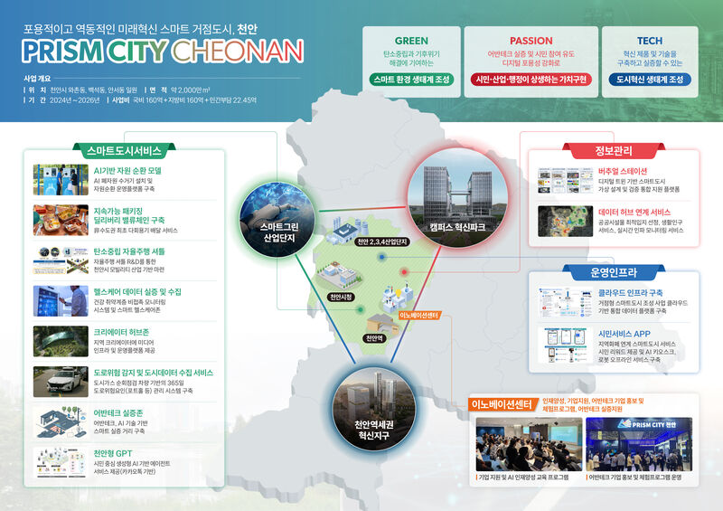 천안시는 ‘포용적이고 역동적인 미래 혁신 스마트 거점도시 조성’을 목표로 정부의 AI 국가 전략에 맞춘 지역 특화 사업을 본격 추진한다고 20일 밝혔다.